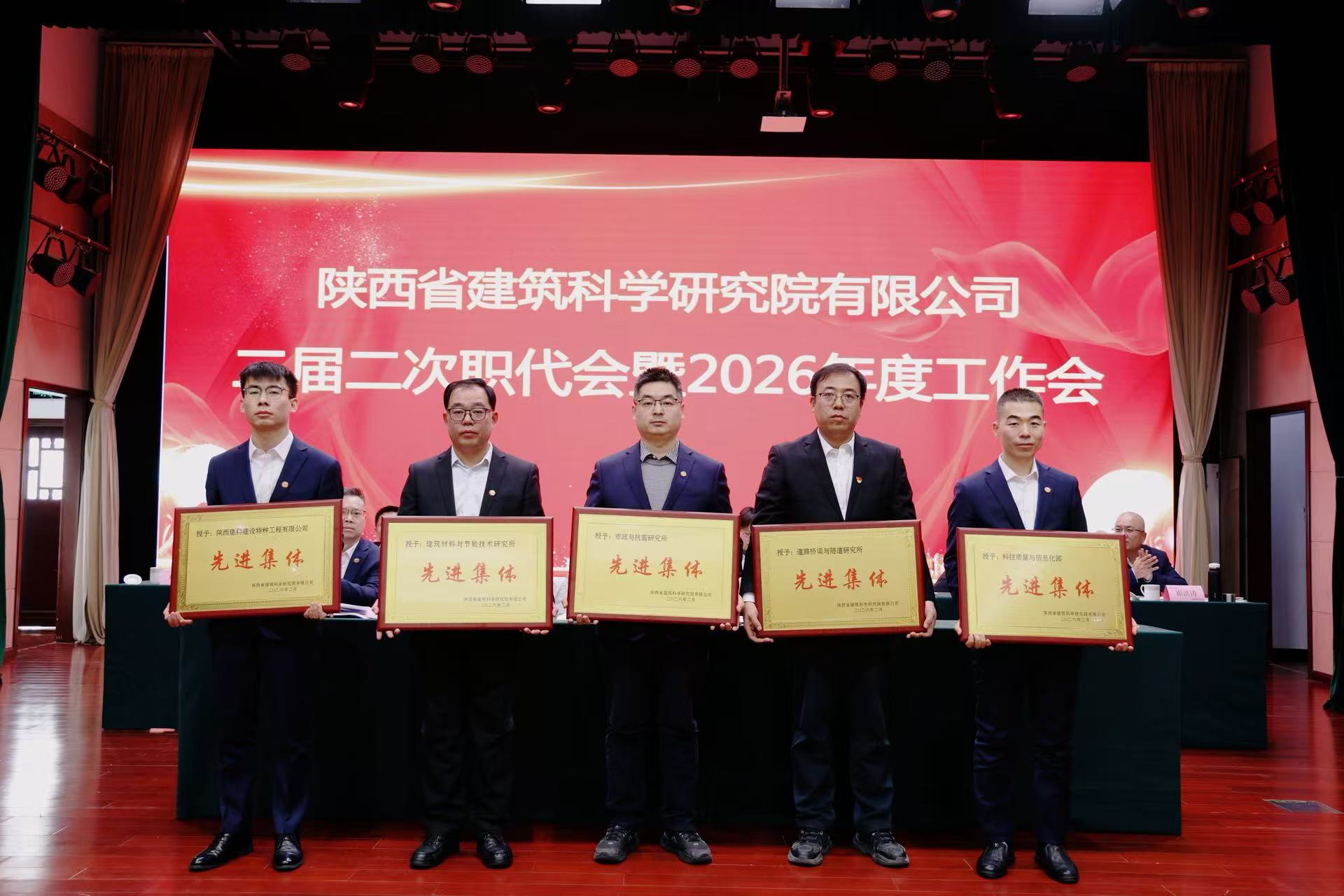 2026年2月12日上午,陕西省建筑科学研究院有限公司召开二届二次职代会暨2026年度工作会议。会议对陕建科研院2025年度稳增长突出贡献奖、先进集体、科研成果和先进个人进行表彰,特种公司荣获陕建科研院2025年度科技突出贡献奖和稳增长突出贡献奖、2025年度先进集体,并获多项个人和成果奖励。
